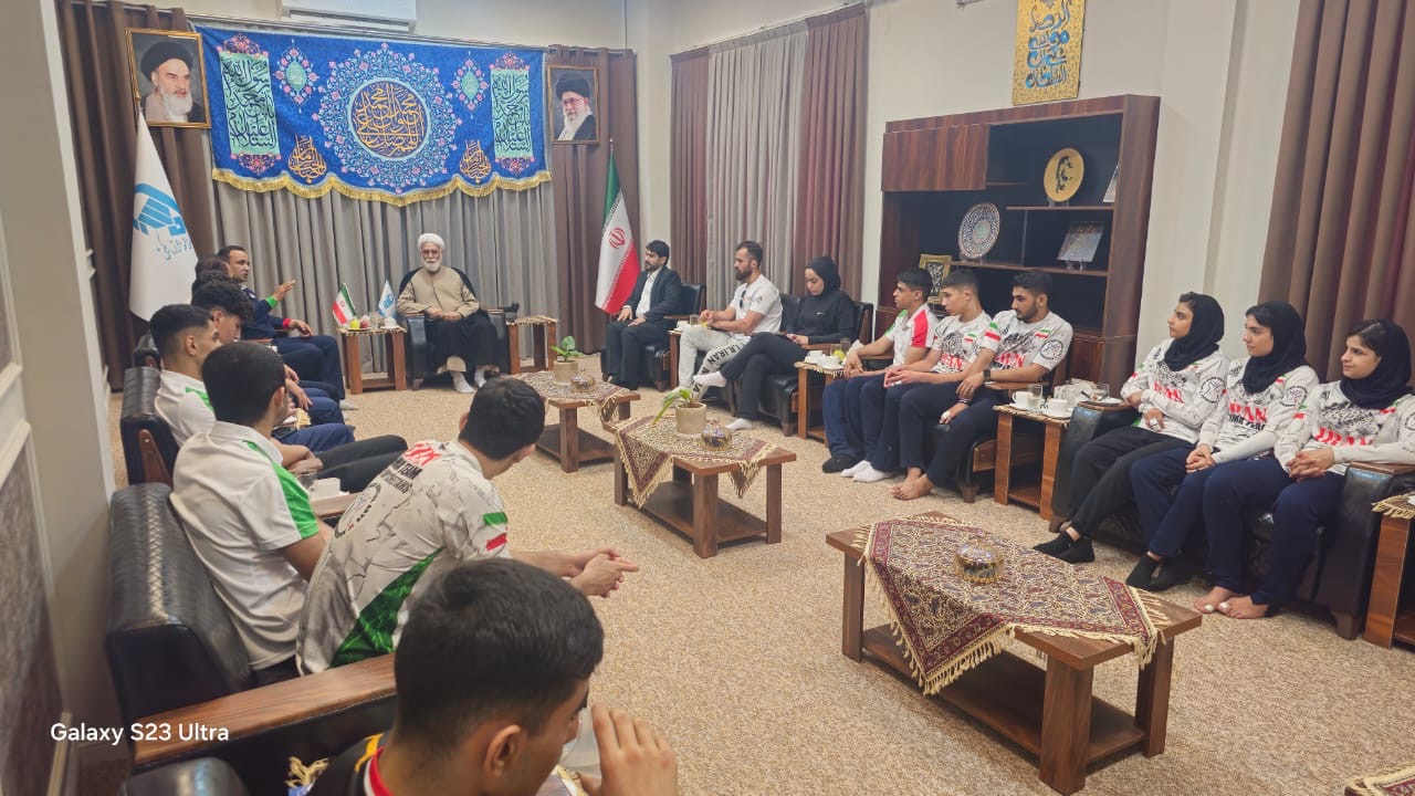 نشست صمیمی امامجمعه کیش با رئیس هیأت انجمن ورزشهای رزمی و اعضای تیمهای ملی ورزشهای رزمی ترکیبی و پنچاکسیلات