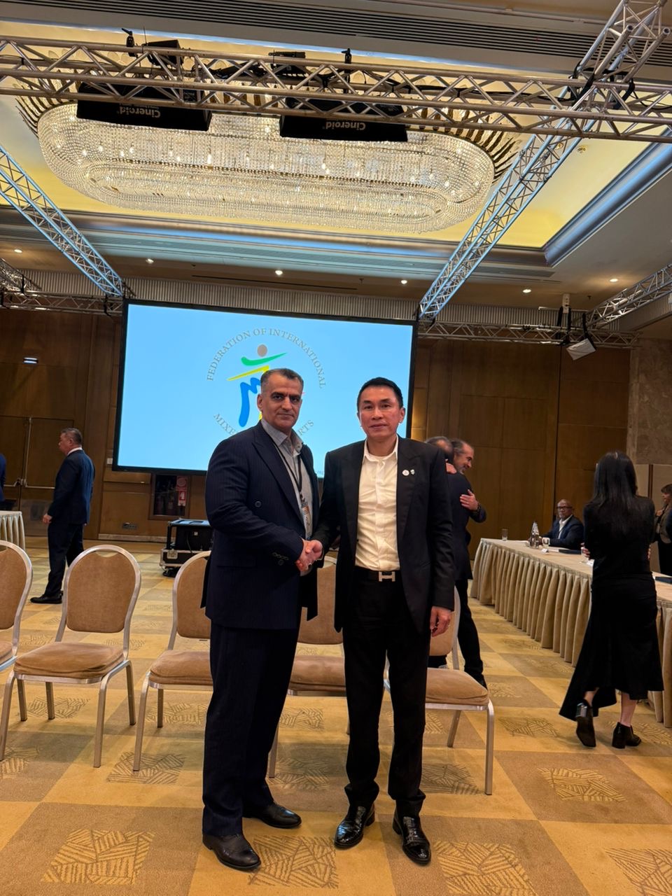 ۱۴۰۴/۰۹/۱۰ | ۱۶:۳۶:۱۱نخستین جلسه تأسیس فدراسیون بینالمللی هنرهای رزمی ترکیبی (FIMMA) روز اول دسامبر ۲۰۲۵ در هتل آتناسیوم اینترکانتیننتال آتن با حضور نمایندگان نزدیک به ۷۰ کشور از پنج قاره جهان و با پشتیبانی مستقیم مقامات عالی جنبش المپیک برگزار و در این نشست رسماً تشکیل این فدراسیون جهانی را اعلام شد.