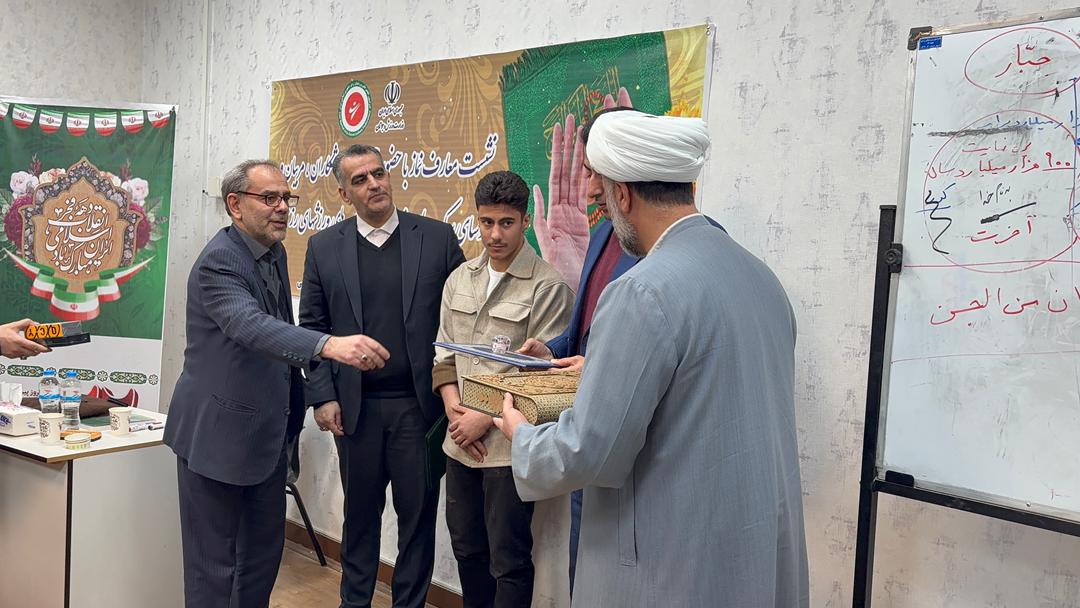 در پایان این نشست، از امیرمحمد حاتمیان افشاری، ورزشکار نمازی قهرمان و مدالآور بازیهای آسیایی جوانان بحرین در رشته هنرهای رزمی ترکیبی ، بهپاس اهتمام شایسته به اقامه نماز و بهجا آوردن نماز شکر پس از کسب مدال طلای بازیهای آسیایی جوانان بحرین، با اهدای لوح تقدیر از سوی ستاد اقامه نماز کشور با توشیح حجتالاسلام والمسلمین استاد قرائتی به همراه هدایا شامل تفسیر یک جلد قرآن کریم و انگشتر متبرکه رهبری و لوح تقدیر و هدایا از سوی فدراسیون انجمنهای ورزشهای رزمی تجلیل بهعمل آمد.